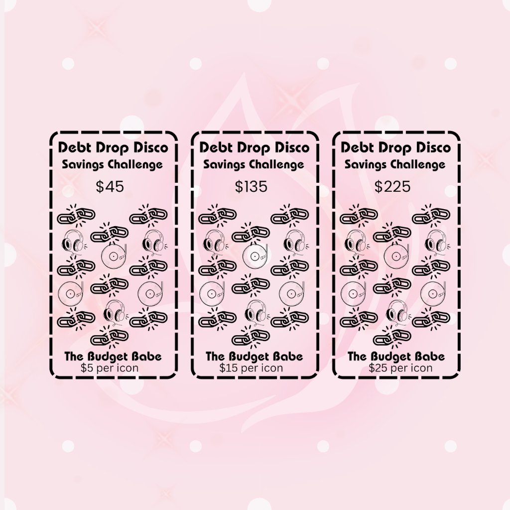 Dance your way out of debt with this fun disco-themed bundle! Includes 2 progressive debt challenges with 3 A6 design variations each (6 total trackers).