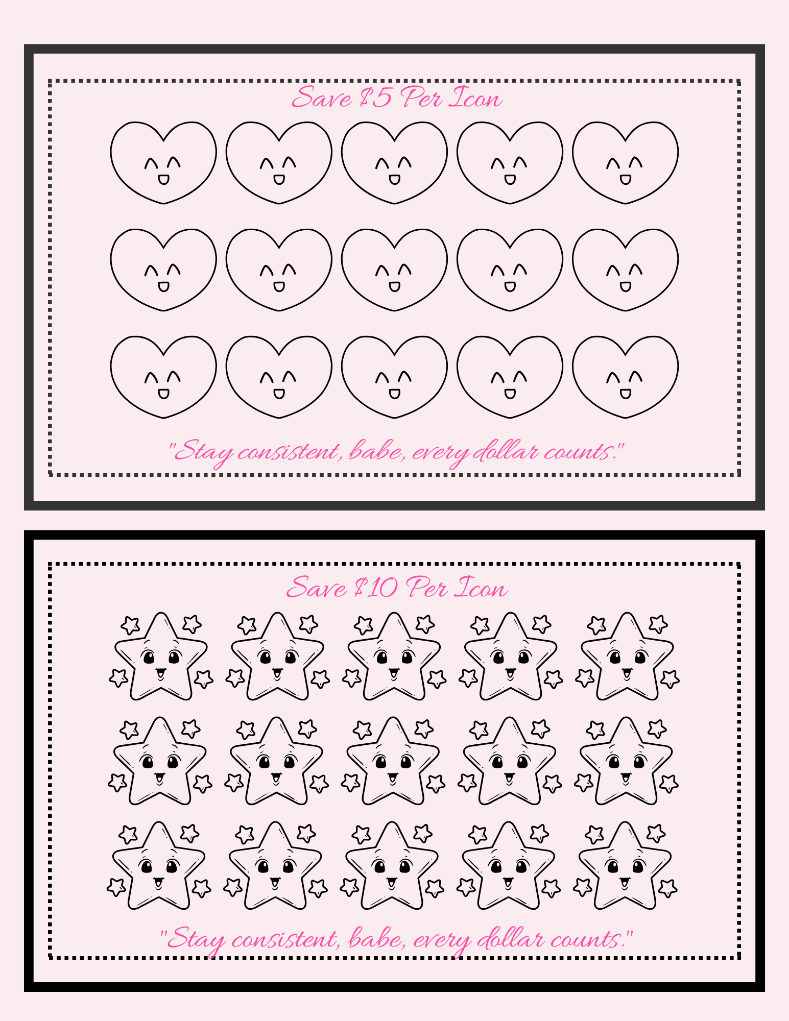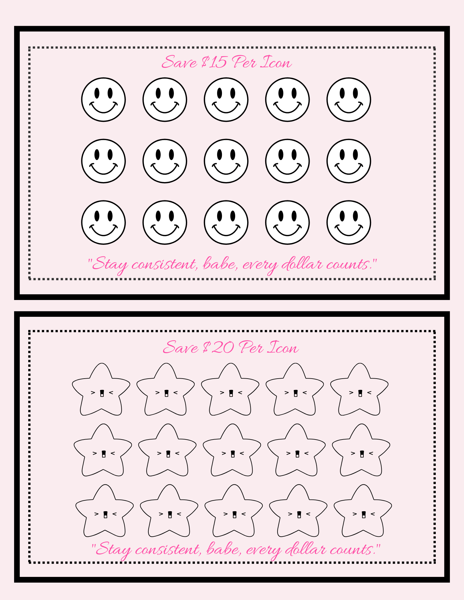 How It Works: Start with $5 per icon and work your way up to $20! The progressive structure builds your savings muscle gradually - you'll gain confidence with each completed tracker. By the time you reach the $300 challenge, saving $20 at a time will feel natural!
